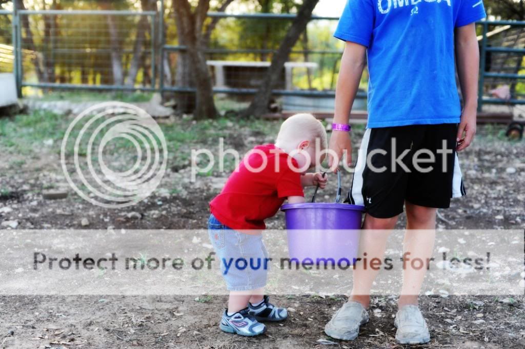 Meet Miss Mabel (or is it Mable or Maybel??). Last Friday, the Waldrip fam was kind enough to introduce us to their newest find. Atlee loved it. And he especially loved "gathering" with Chase's rock bucket.